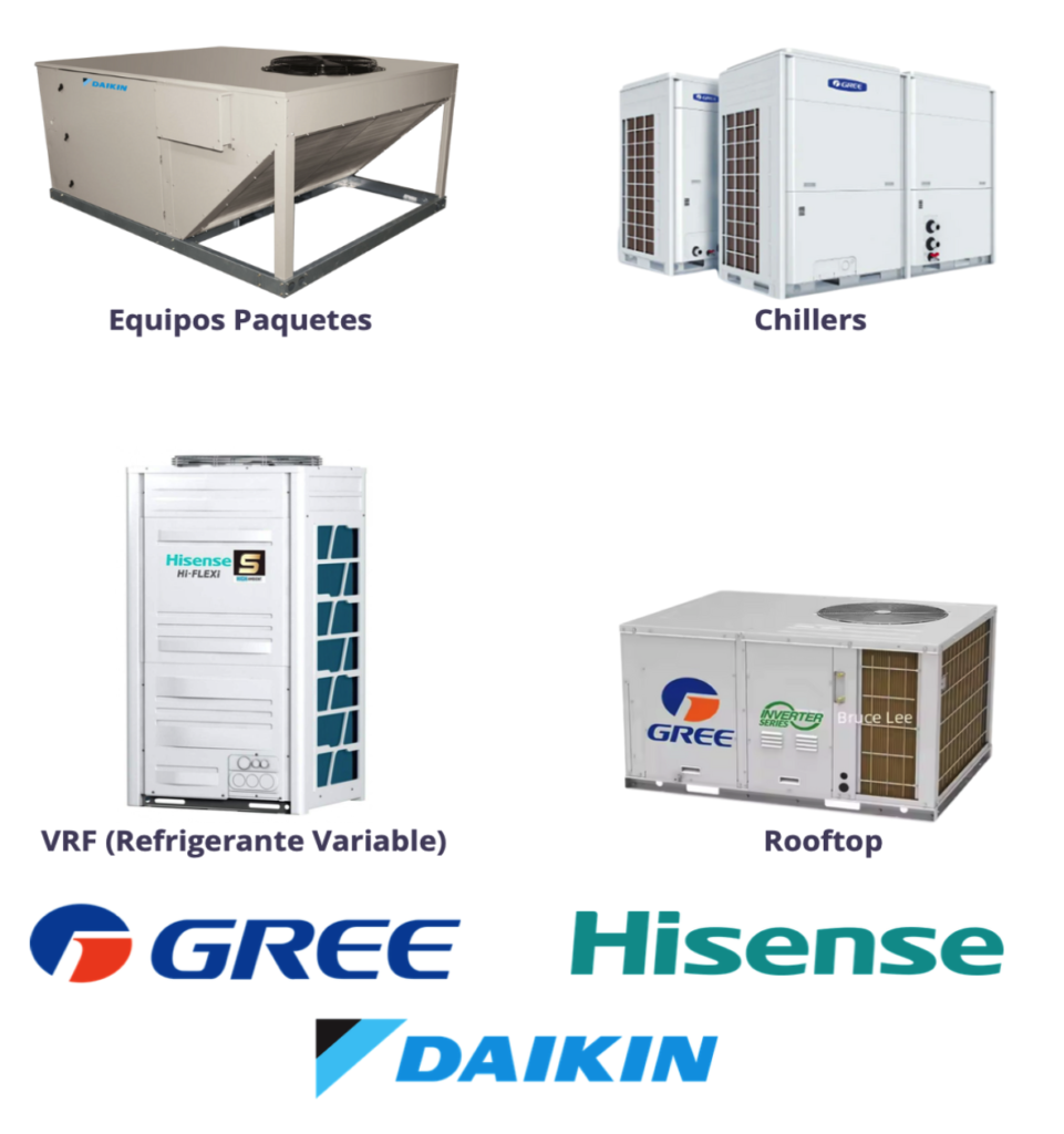 La línea de aires acondicionados industriales está diseñada para climatizar grandes espacios con alta eficiencia y potencia. Incluye equipos como Unidades Tipo Paquete, Sistemas VRF, Chillers, Manejadoras de Aire y Unidades Rooftop , ideales para fábricas, centros comerciales, hospitales y edificios corporativo